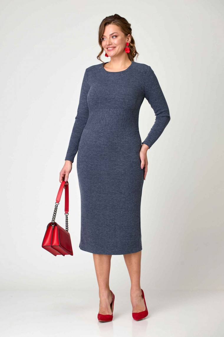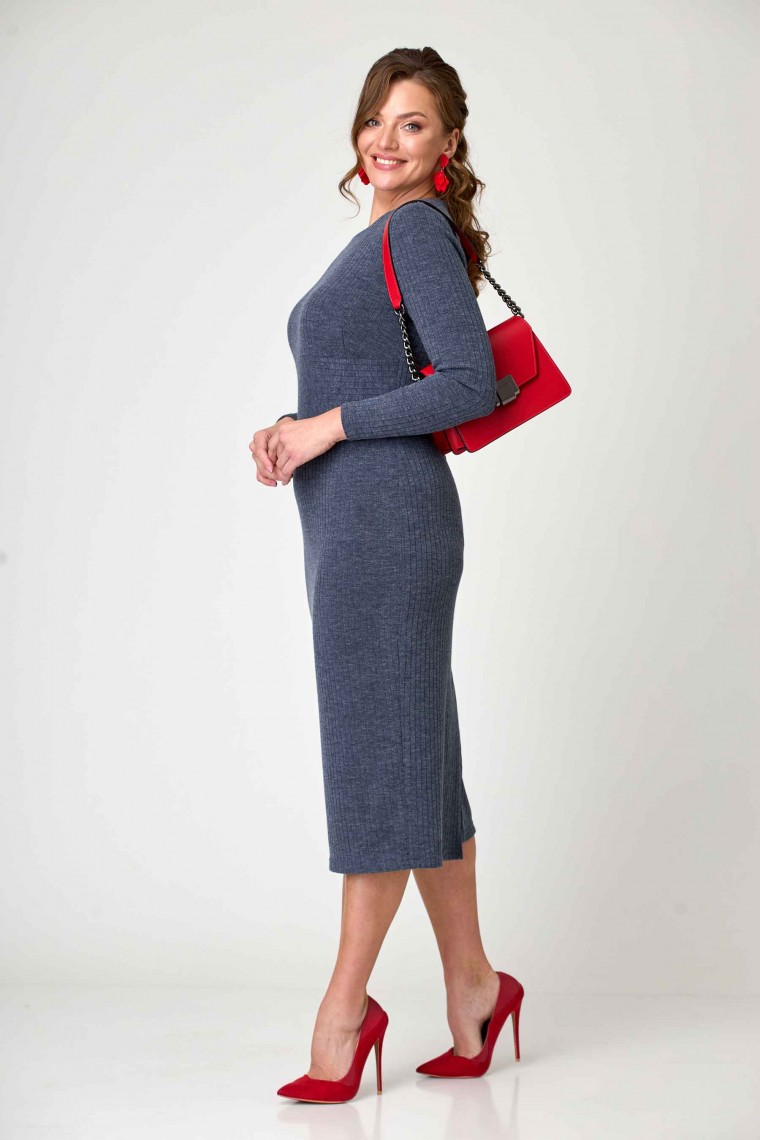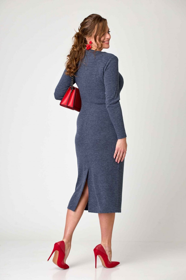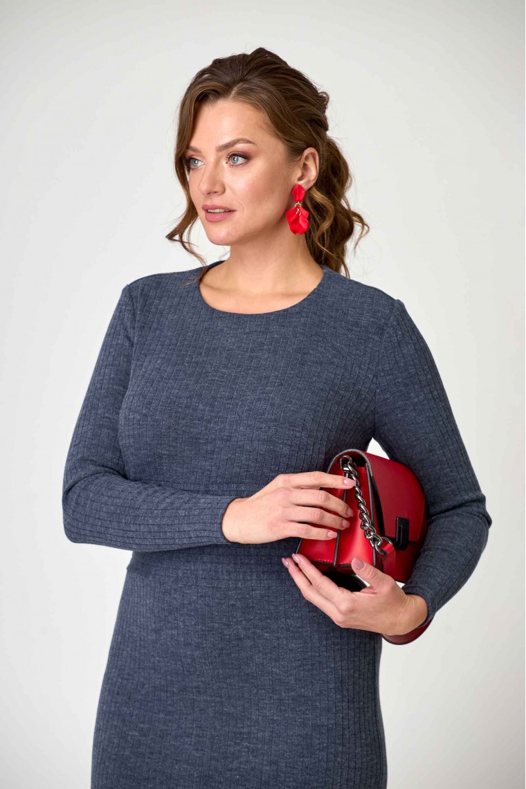 Платье женское полуприлегающего силуэта из трикотажа "лапша". Горловина округлая. Рукав длинный одношовный. Перед отрезной, с вставным широким поясом. Лиф с нагрудными вытачками. Юбка платья заужена к низу, внизу шлица. Спинка с центральным швом, вверху которого застёжка-молния. Аксессуары не входят в комплект.